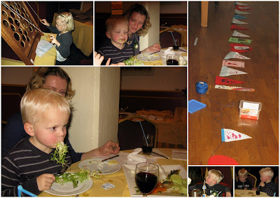 Hij speelde het spelletje vrolijk mee en begon als een tweejarige te brabbelen, geen touw aan vast te knopen. Hij nam die mevrouw gewoon beet, dat kleine (lieve) draakje. De kapster en ik begonnen allebei te grinniken en ik heb die mevrouw maar snel verteld hoe de vork in de steel zat en dat hij over een poosje al vier wordt! Die mevrouw kon er ook wel om lachen. Ondertussen stond hij wat verlegen met onschuldig gezicht naast me, al die aandacht was toch teveel van het goede. Ik weet niet wat dat nog gaat worden, drie jaar en dan al toneelstukjes opvoeren en in je rol blijven...